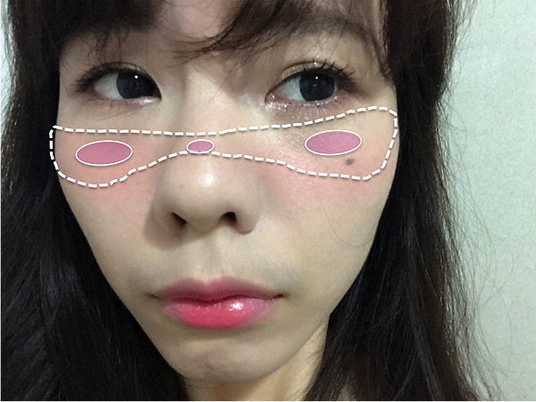 1.用指腹沾抹PK2,先點在途中粉紅色打圈的位置範圍