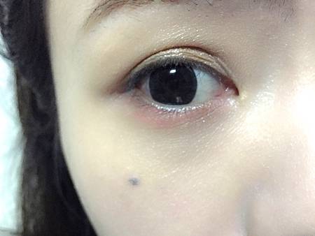 1.上眼皮選擇的是亮亮的粉膚色塗滿 再用可可色刷過當眼線色
