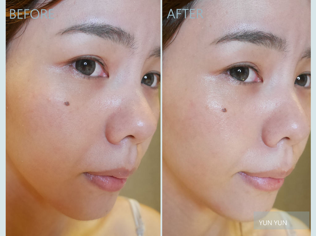使用後,肌膚保水度提高,毛孔細紋較不明顯,肌膚呈現較為飽滿柔滑有光澤