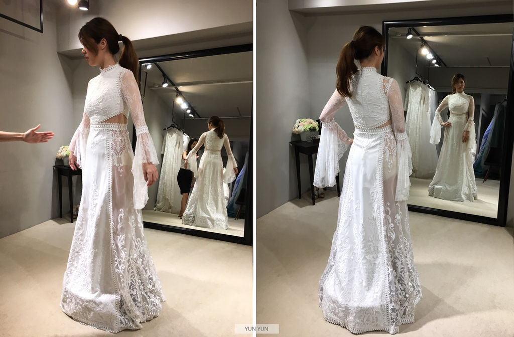 (因為我是2017年底試穿的,所以還是整修前的空間,今年已經改裝完成有獨立的試穿空間囉~)