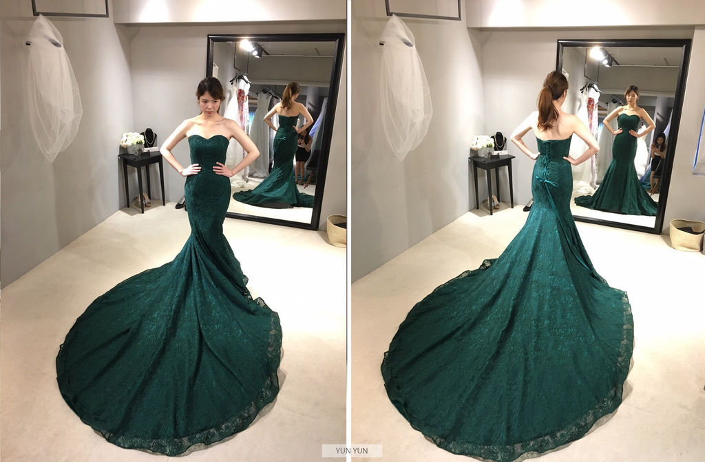 禮3:這件祖母綠魚尾親朋好友看了都很喜歡,也是我試穿了幾家店覺得版型最好的魚尾,攝影師也一度說服我選這件XD