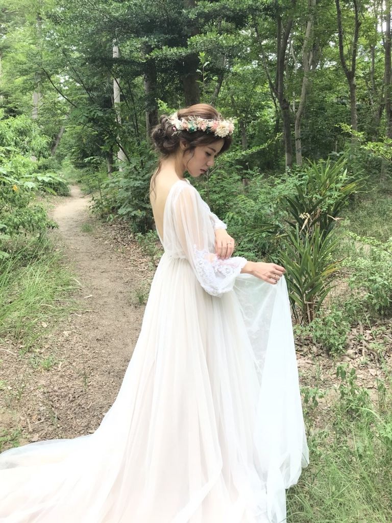 拍照時就是想穿宴客比較不會選擇的這種浪漫款式呀~~大愛蓬袖